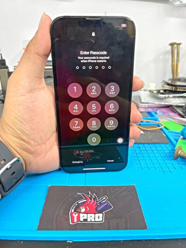 Encik Zalani datang dengan iPhone 13 Pro Max. Skrin iPhone tersebut telah bertukar kuning dan tidak boleh digunakan. Selepas pemeriksaan, skrin perlu dibaiki segera. Kami menggunakan teknik ‘Jumper’ untuk memintas litar pintas. Proses pembaikan selesai dalam masa 1 jam. iPhone kini kembali normal seperti sedia kala. Skrin hijau pada iPhone (iPhone green screen) ini sering menjadi masalah. Proses pembaikan dengan teknik ‘Jumper’ berjaya mengatasi masalah tersebut. Encik Zalani gembira kerana masalah skrin kuning telah selesai. iPhone green screen adalah isu biasa yang kami selalu hadap kebelakangan ini. Kami sentiasa memastikan iPhone berfungsi dengan baik selepas repair.